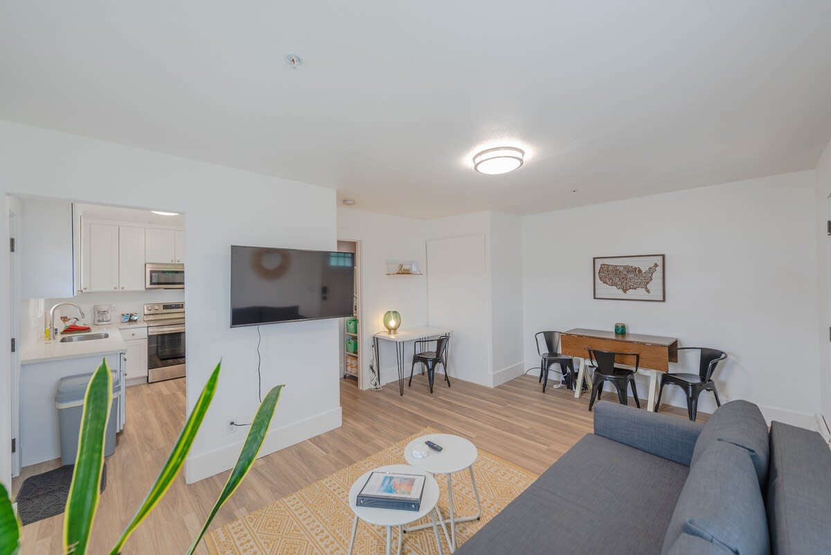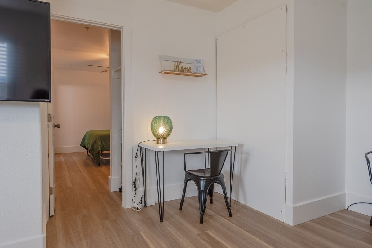 Gather around the dining table with seating for up to six, perfect for sharing meals or lively conversations. Each unit also includes a dedicated desk in the living area, making remote work both comfortable and seamless.
