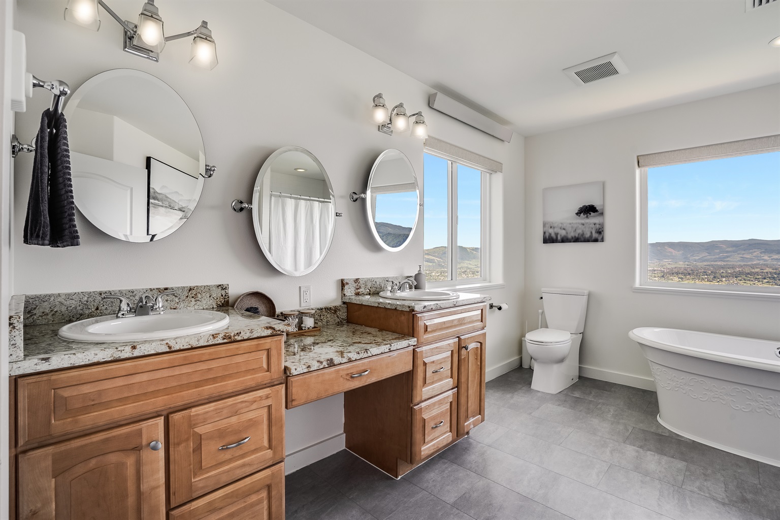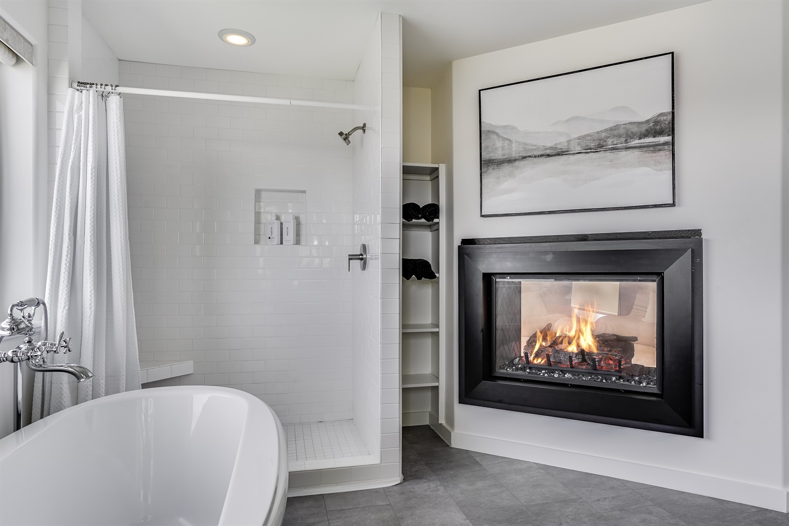 🚿 Bathroom 1: Full bathroom w/ stand-up shower and freestanding bathtub. Located on the upper level inside Bedroom 1