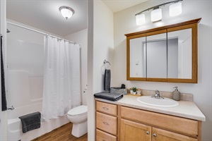 🚿 Bathroom 3: Full bathroom w/ stand-up shower/tub combination. Located on the lower level