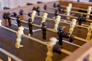 Score some fun and friendly competition with our foosball table!