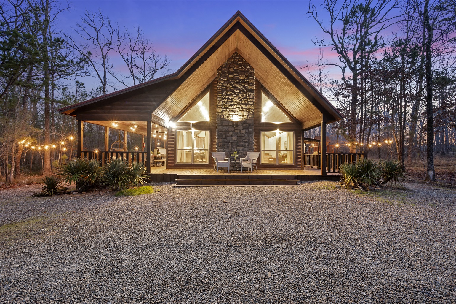 our Home Away from Home Awaits! Step into serenity as you approach our beautifully adorned exterior front. With its inviting ambiance and picturesque surroundings, our cabin promises a cozy retreat and unforgettable memories. Book your stay now and