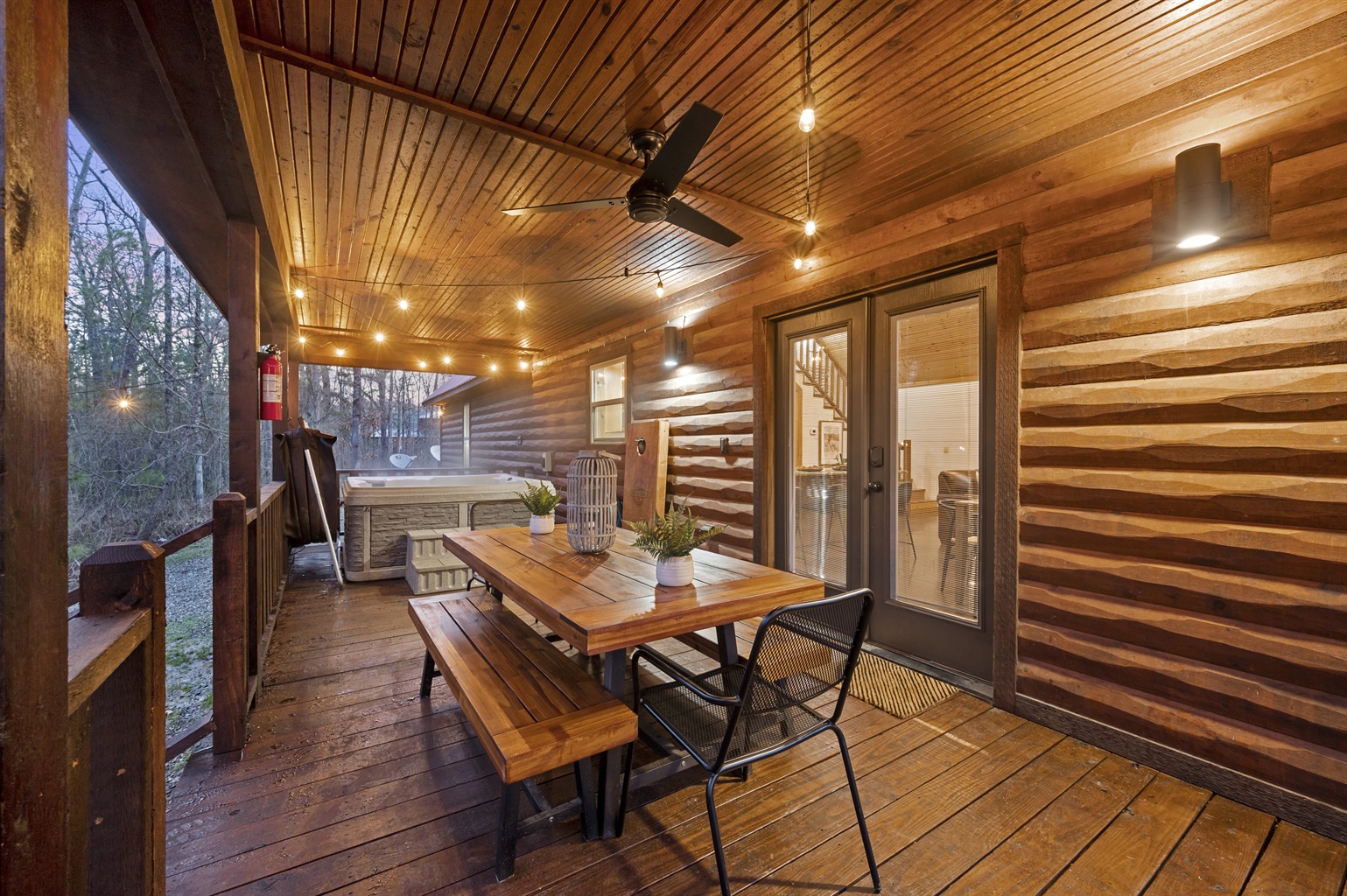 Relaxation awaits! Unwind in our inviting hot tub nestled on a charming patio. Perfect for starlit evenings or sunny afternoons.